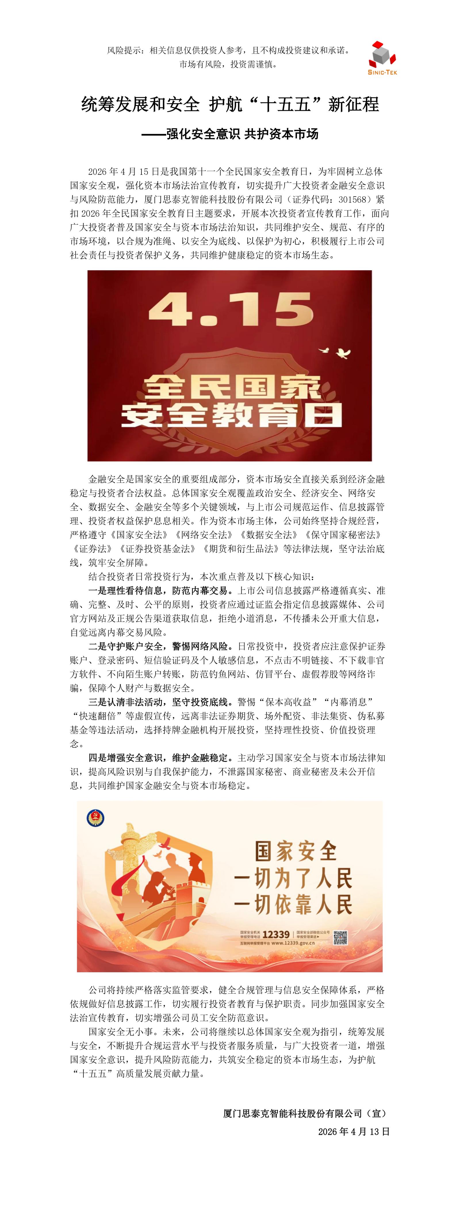 统筹发展和安全 护航“十五五”新征程——强化安全意识 共护资本市场